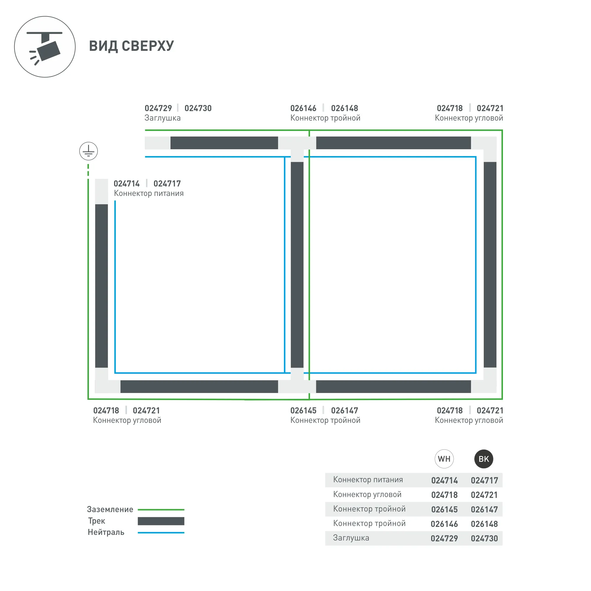 T-образный коннектор для треков 4TR. Цвет белый. Аналог XTS-37 Global Track Pro. Направление соединений снаружи/слева (определение необходимого коннектора происходит относительно контакта заземления системы). 166х99х33 мм с контактами, 99х66х33 мм без контактов. При использовании с треками и аксессуарами другой серии возможно отличие по цвету.