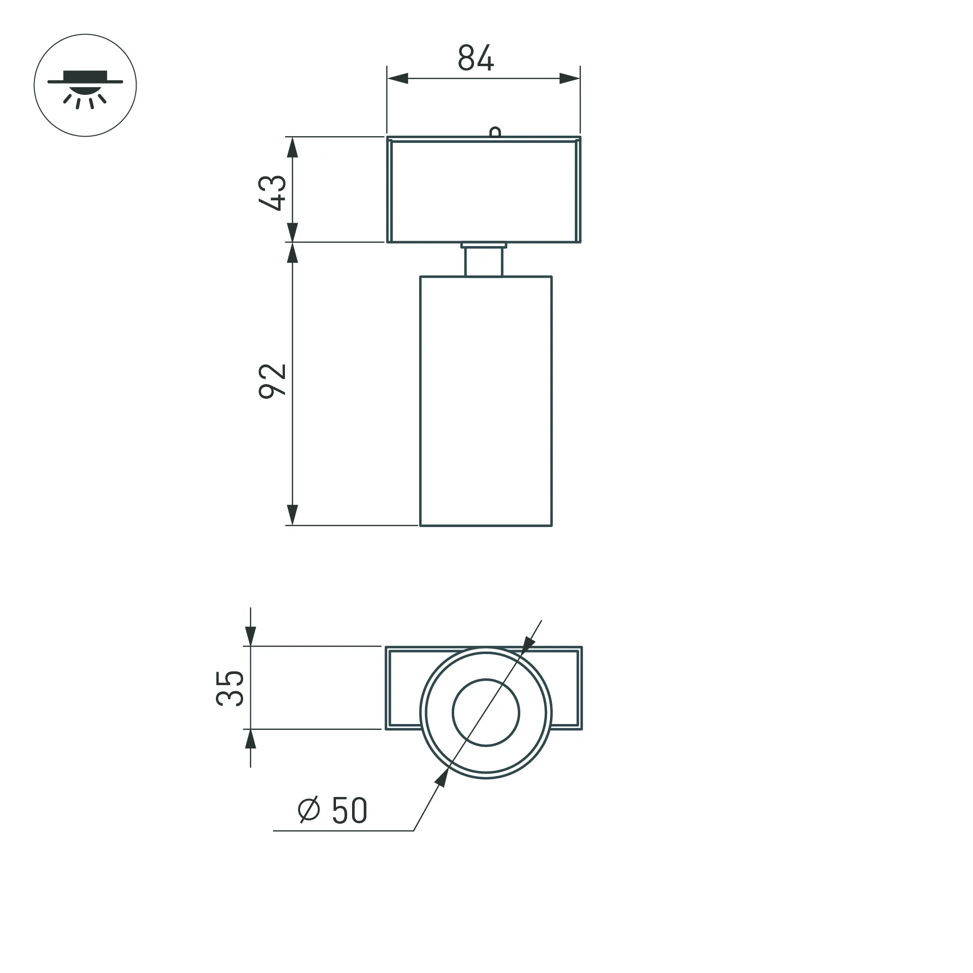 Светильник поворотный для магнитных треков шириной 45мм, 7Вт. Цвет свечения ТЕПЛЫЙ 3000K, световой поток 502лм, угол 24°, CRI>90. Корпус прямоугольный, металл, цвет белый, IP20. Размеры LxWxH 84x35x135мм. Входное напряжение DC24V, мощность 7Вт. Драйвер DС24V/AC230V поставляется отдельно. Диммируется только с 026407(1), 027633.