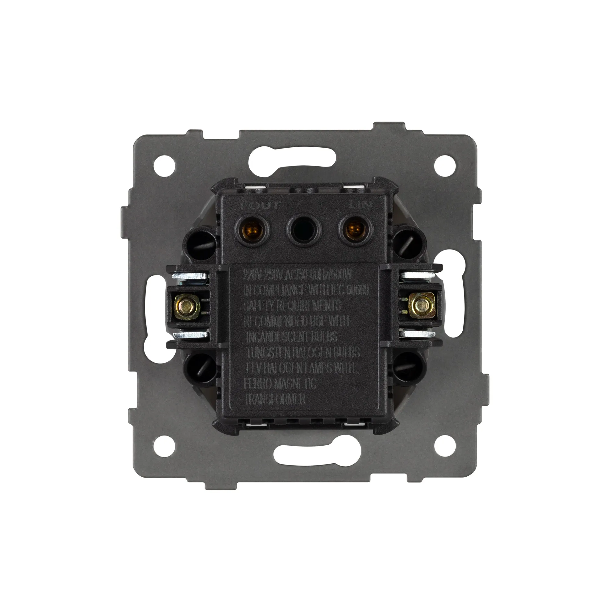 Механизм регулировки света на 1 пост. Цвет - белый. Без фронтальной рамки. Уровень пылевлагозащиты IP20. Механизм устанавливается в стандартный круглый подрозетник. Максимальная нагрузка 500 Вт только для ламп накаливания и галогенных, 150 Вт только для энергосберегающих и светодиодных ламп. Габаритные размеры: длина 71 мм, ширина 71 мм, высота 52 мм. Гарантийный срок 10 лет. *Диммирование по переднему фронту.