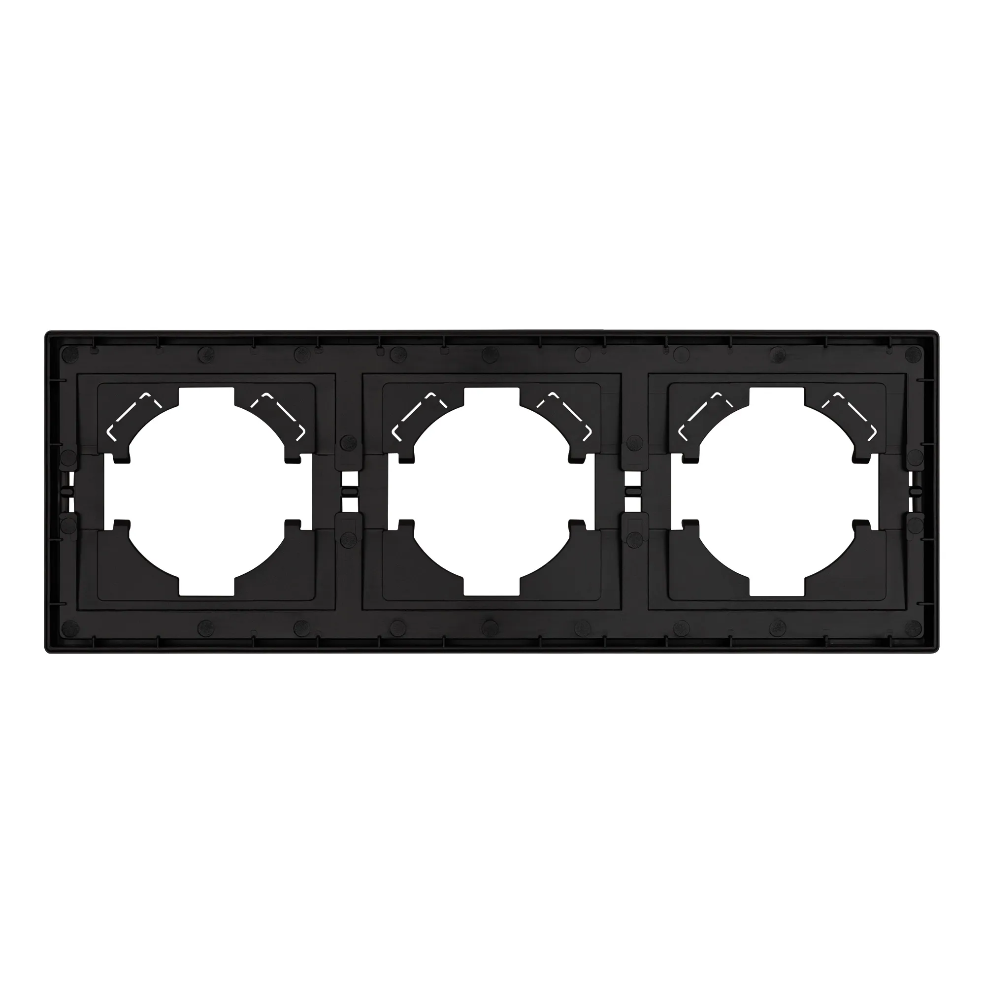 Рамка пластиковая на 3 поста, под встраиваемый механизм. Цвет - графитовый. Уровень герметичности IP20. Ориентация монтажа горизонтальная.